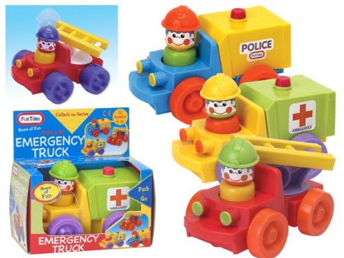 Let your child have hours of interactive fun with this Push & Go Emergency Truck from Funtime. This toy consists of a truck with a driver and several movable parts. As the wheels spin and the truck moves, the little driver goes up and down in his seat. The ladder spins and opens and the driver is detachable. Allow your child to let their imagination run wild with this great toy from Funtime.Read more Funtime 924 Push & Go Emergency Truck (Truck may vary)