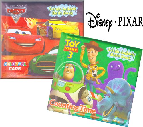 Teach baby numbers and colors with these colorful bath books from Disney Pixar. s are Counting Time (Toy Story 3), and Colorful Cars (Cars 2). Set of 2 soft, water and stain resistant Bath Time Bubble Books® for infants and toddlers. Featuring favorite characters from Toy Story 3 and Cars 2.Each book is 8 pages and measures 5 x 5 inches. This set of books is perfect for bath time, pool time, playtime, or anytime!