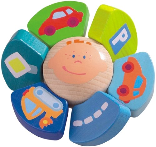 This cute grabbing toys gets future drivers ready for their first driving lesson. The 6 colorful tabs rotate and have all essential traffic sign right at hand. With little bell.