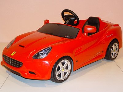 Are you ready for this Toy Ferrari ride on car? Beautiful bright red, this Ferrari California battery ride on car is perfect for toddlers but only accessible to a select few. Hurry - this is a HOT car and will sell out fast. Only for the exclusive few, the Ferrari California is every bit as desirable as its adult version but even harder to get your hands on. You now have the chance to own this fabulous supercar. Its extraordinary looks are the first thing that hit you - this is a car that screams opulence and exclusivity. This is a car against which all other childrens cars will be measured. Specs: Age: Suitable for ages 5 and under Max rider height: 3'6" tall Max rider weight: 65 lbs Motor(s): 1 x 12 Volt Batteries: 2 x 6 Volt Rechargeable Batteries Speed: 5mph (8km/h) Drive Time: 1.5 hours Forward, reverse and neutral gears Electronic accelerator - the car will stop when your foot is off the accelerator Tough Polystirene and Polyethylene bodywork - very strong and flexible Paint
