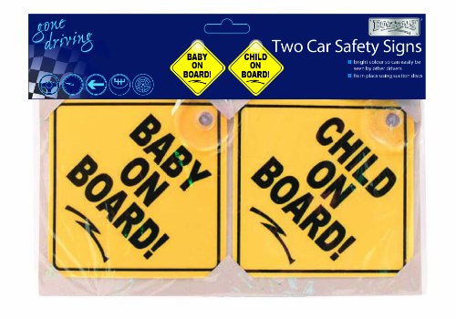 Twin Pack Of Car Safety Signs. You Will Recieve One 'baby On Board' Sign And One 'child On Board' Sign. Very High Quality Made Product Made Of Plastic. Tough And Durable. How To Use; Clean The Area Where The Suction Disc Will Be Positioned And Allow To Dry. Always Apply Between Defroster Lines. To Help Adhesion, Slightly Moisten The Suction Disc Before Positioning. Recommended Position - Lower Corner Of Rear Of Side Window.