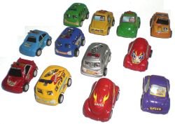 YOU GET 12 DIFFERNT PULL BACK CARS. JUST PULL THEM BACK AND WATCH THEM GO. EXACT COLORS AND STYLES WILL VARY. CHOCKING HAZARD - CONTAINS SMALL PARTS - NOT FOR CHILDREN UNDER 3