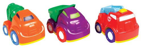 These free-wheeling, easy-to-grasp construction vehicles come in bright colors. it's a set of three -- a cement truck, dump truck and fire engine. Small World Toys is committed to the fundamentals behind good toys with innovative and safe designs and courteous and prompt customer service. Small World Toys product standards are focused on developing and delivering the safest and highest quality products for children. Play is an integral and necessary part of a child's development and education. This philosophy is at the core of its product development and drives the company to continue developing and sourcing new and innovative products. It prides itself in developing products that encourage creativity and build self-confidence through play.