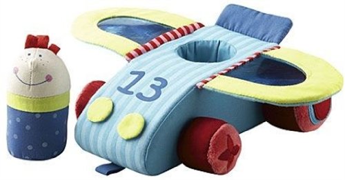 HABA 0905 - Scoots like an airplane or a zippy car through the room. Magnetic wings, wheels attached by elastic band. With little bell and rattle. Measures 6" in length. Recommended for 10 months and up. Made in China