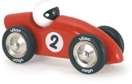 Vilac's large competition car is a classic toy that nourishes children's imaginative play and will stand up to wear and tear. The Vilac competition car is no exception to the rule: the colors are classic, the craftsmanship superior, and whether you're one or forty one, you'll enjoy taking these wheels for a spin. With shiny hubcaps and wooden body, this attractive wooden toy race car is one smooth ride. Well designed and well made, it has no sharp edges and rolls easily.